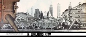À la même époque, le collectif britannique Archigram imagine des visions futuristes comme la célèbre Walking City de Ron Herron (1964), une ville mobile et intelligente conçue comme un exosquelette géant. Ce type de spéculation architecturale visait déjà à provoquer le débat sur les manières d’habiter et d’organiser nos sociétés.